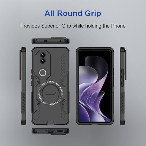 Zapcase Back Case Cover for iQOO Z10R | Magnetic Case with Built-in Metal Ring | Supports MagSafe Charger, Wallet & Car Mount | Shockproof Hybrid PC + TPU | Black
