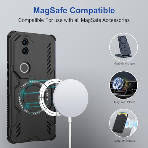 [Material]: Made with high-quality shock-absorbing TPU bumper, sturdy PC metallic shell, and an integrated MagSafe Ring for MagSafe support. Smart airflow design with open vents helps prevent the phone from overheating during extended use or charging.