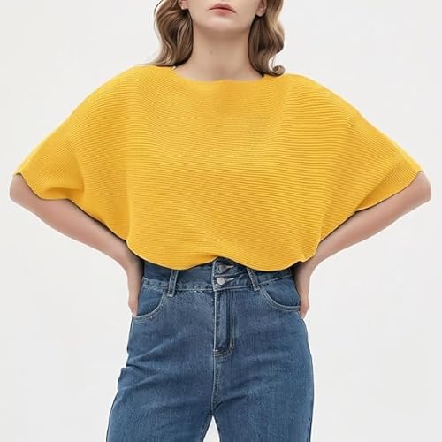 Zilcon Woman Fashion Ribbed Batwing Sleeves Bagy Balloon Style Fit Tops for Women Women Formal, Casual, Office, Date, Outing, Party Tops (in, Alpha, M, Regular, Yellow)